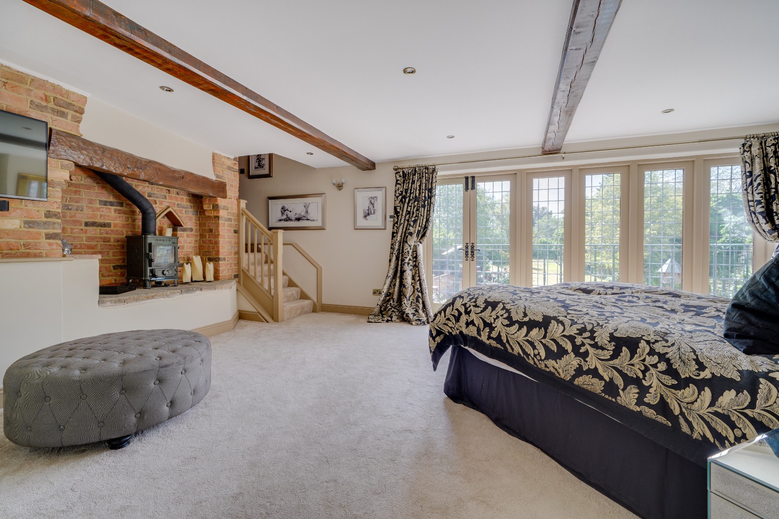On the first floor, the principle bedroom suite is the star of the show, featuring his and hers dressing rooms, a luxury four-piece ensuite and a balcony giving panoramic views over the south facing gardens, sun deck and swimming pool. The guest suite includes an ensuite and dressing room with the two further double bedrooms both featuring impressive and recently updated ensuites. The superb galleried landing completes the first floor.