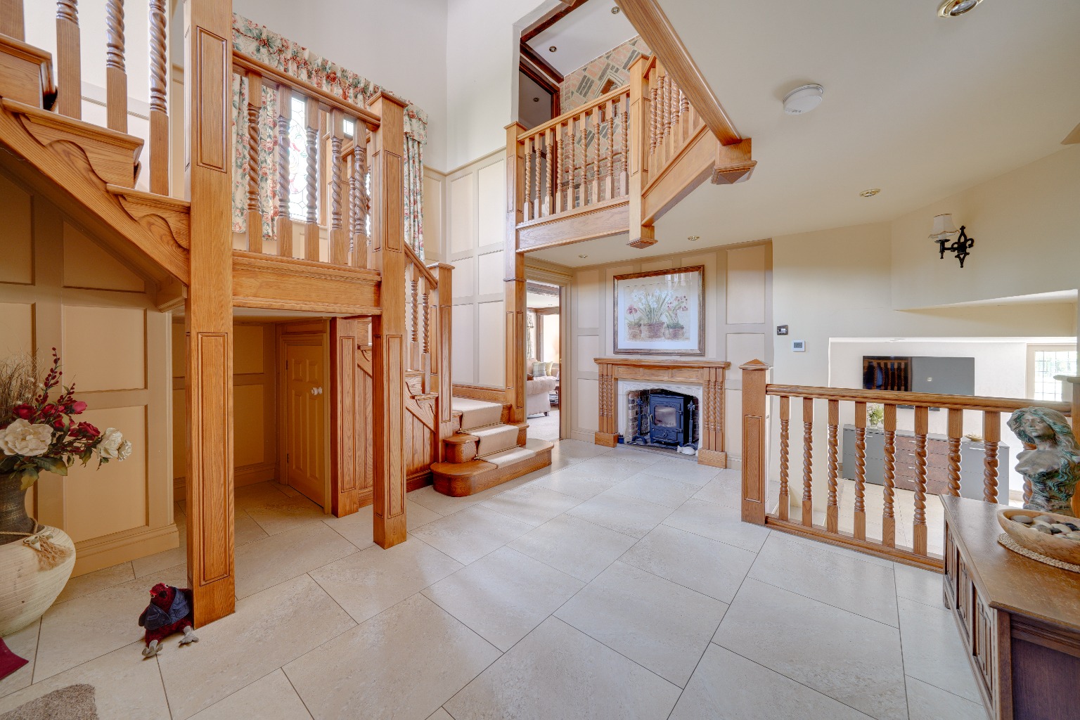 The generous and meticulously presented accommodation features an impressive full height entrance hall with bespoke oak staircase and welcoming wood burning stove, leading on to the cozy sitting room with inglenook fireplace and views towards the heated swimming pool and sun terrace. The snooker room complete with bar is perfect for enjoying evenings with friends but can be transformed to play host to the christmas banquet. The family room is the heart of this wonderful family home and opens to the rear gardens, the garden room and of course, to the bespoke country style kitchen with generous central island. The utility and downstairs cloakroom are also close by completing the ground floor accommodation.