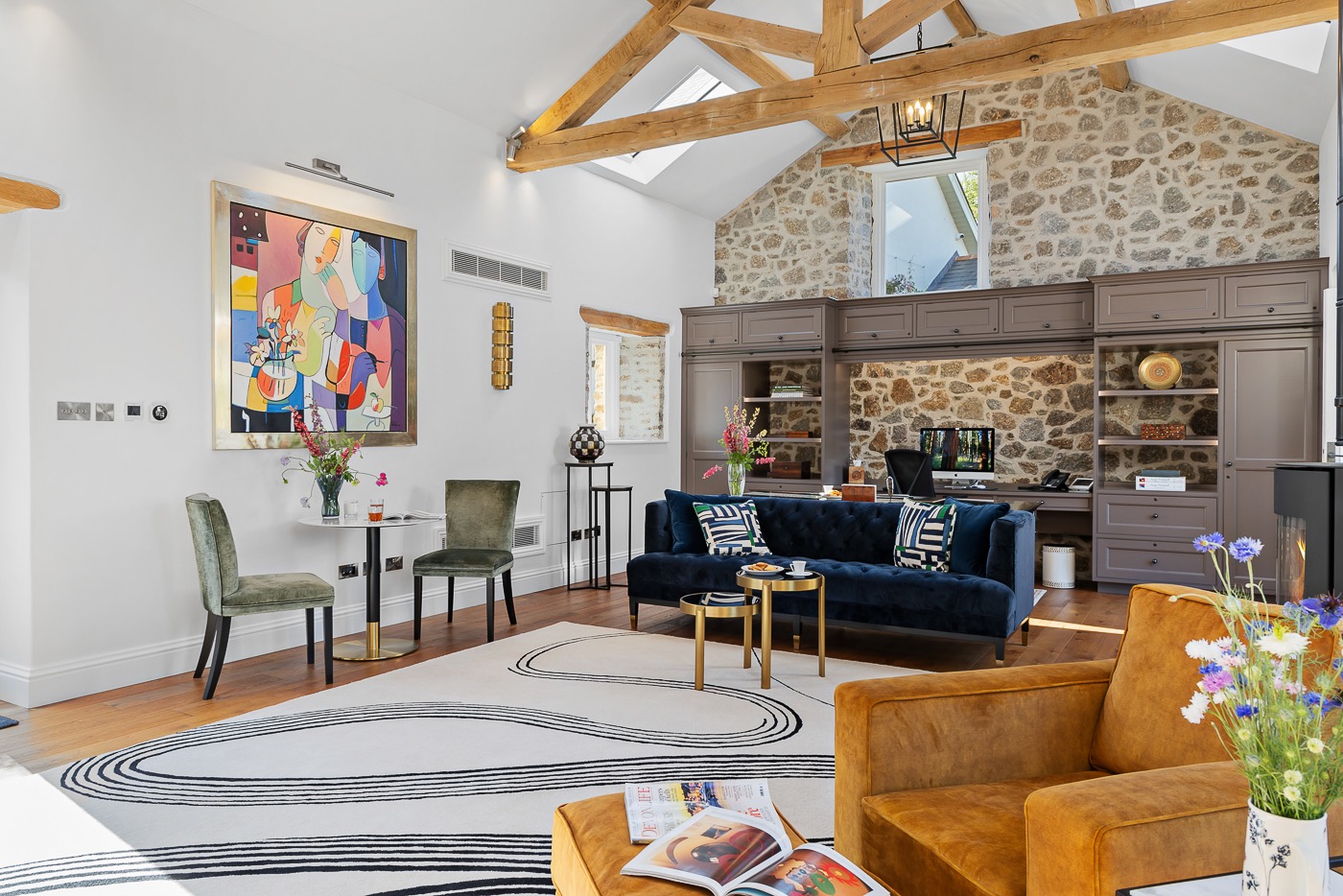 Every part of Beadon Farm reflects careful restoration and high-quality craftsmanship. Stone masons rebuilt walls and created walled gardens, while a local blacksmith designed bespoke gates featuring foxgloves and birds. The buildings have been brought back to life with a vision rooted in sustainability, flexibility, and calm, creating spaces that are both functional and aesthetically remarkable.