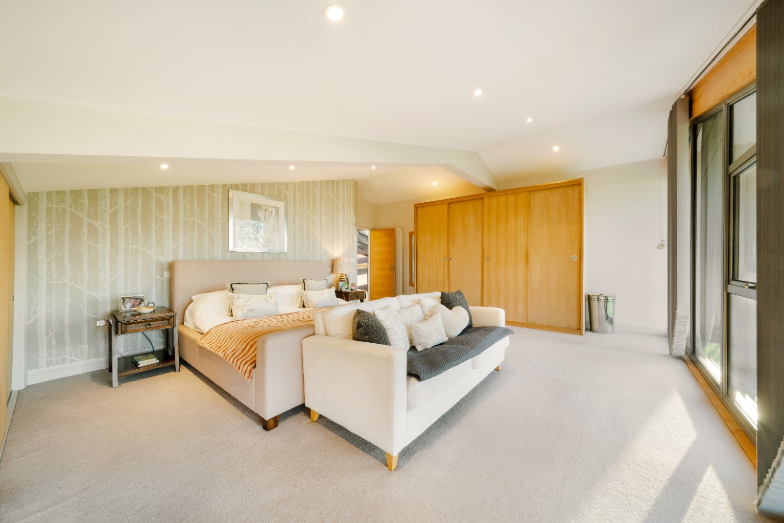 Upstairs, the bedrooms are well proportioned and positioned to maximise light and views. The principal suite is spacious and understated, with a well-finished en suite. The internal two-bedroom annexe forms a distinct wing within the house, offering excellent flexibility for guests, older children or multi-generational living while remaining fully connected.