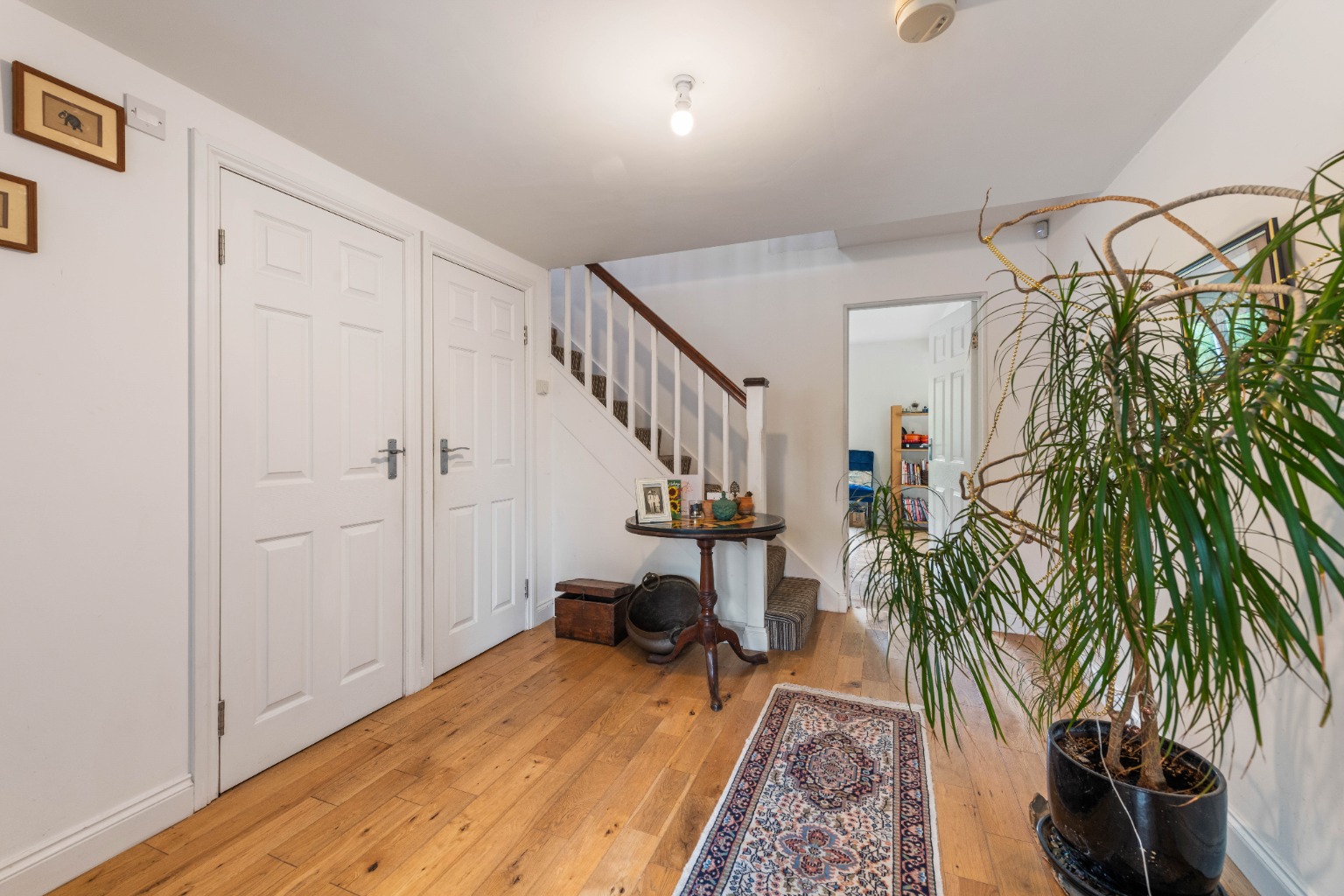 The property is approached via a private driveway providing off road parking. A smart entrance door opens into a wide and welcoming hallway which sets the tone for the space throughout. The hall itself is unusually large and features wood flooring, storage cupboards and access to a guest cloakroom. To one side is a useful study, ideal for those working from home, and to the front of the house is a generous lounge with a broad window filling the room with natural light.