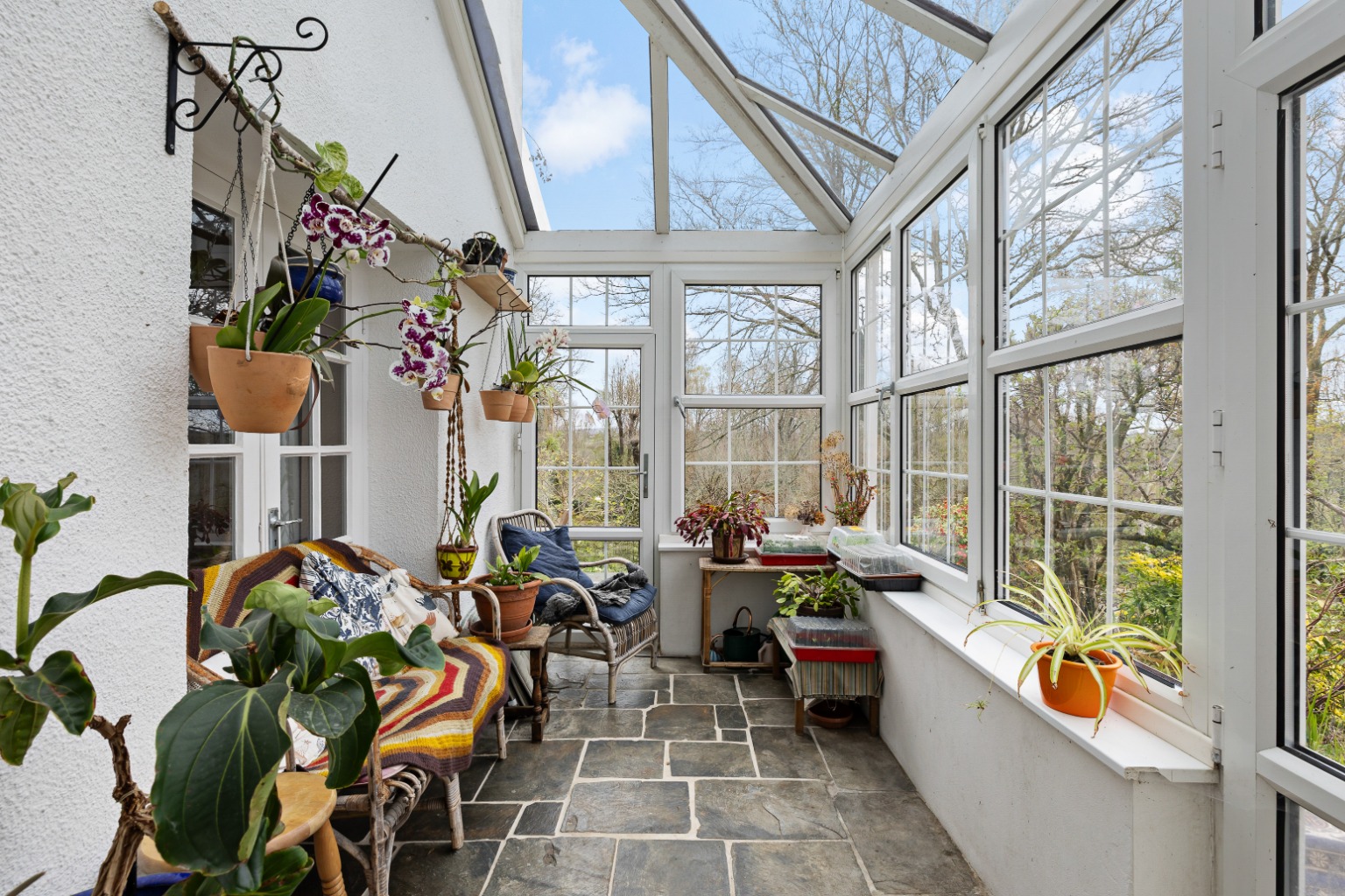 Frank Mills House offers bright and well-proportioned accommodation, with a lovely sense of character that reflects its origins as two cottages that were thoughtfully brought together to form one home. Large windows draw in the natural light and frame views of the surrounding gardens and valley, giving the house a warm and uplifting feel throughout.