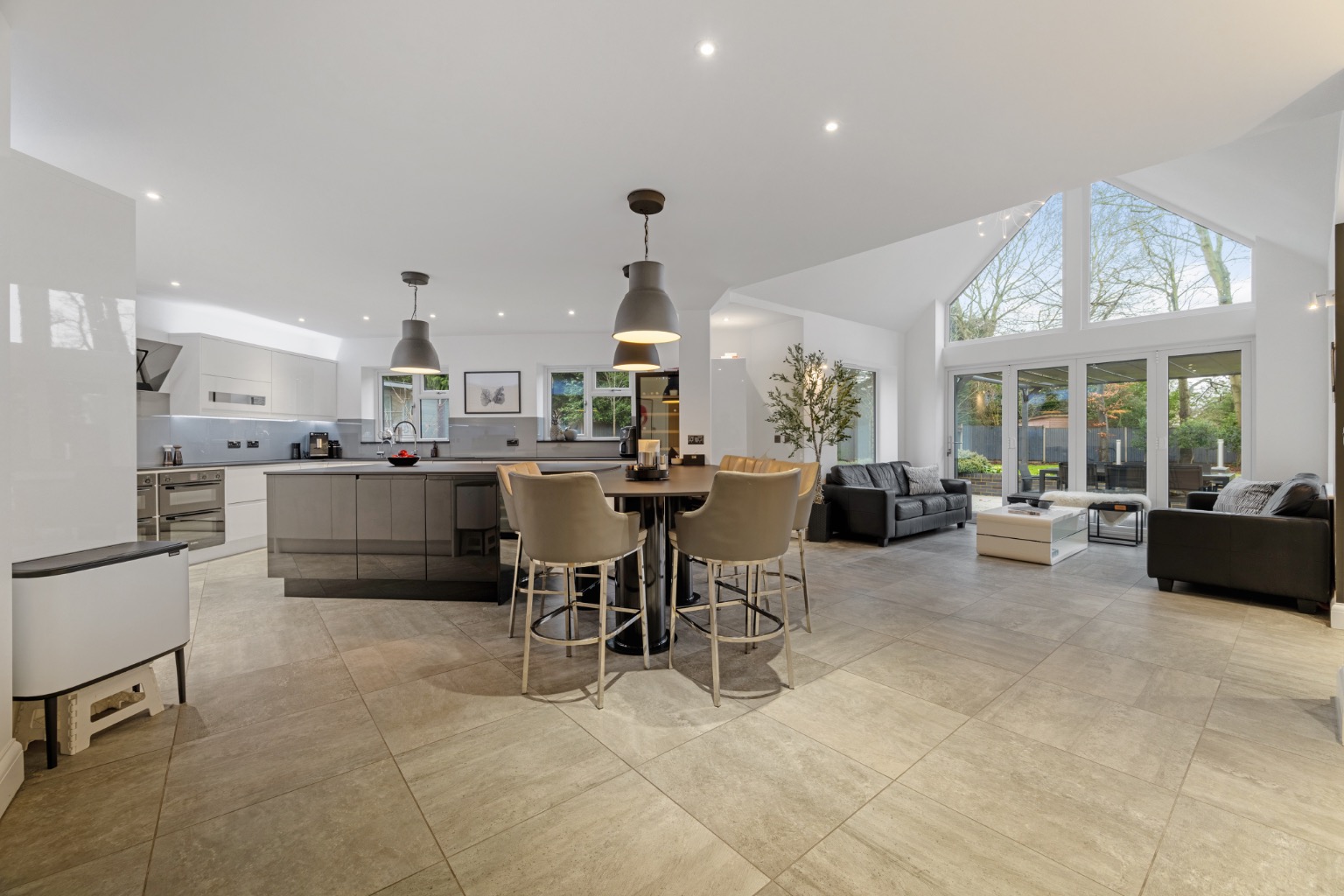 Stunning open-plan kitchen/dining/family room with bi-fold doors opening directly onto the garden