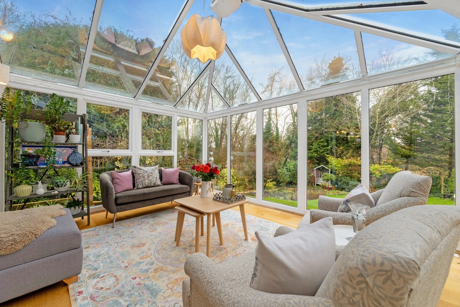 Externally, The Laurels truly excels. Occupying a plot of approximately 1/3 of an acre, the property enjoys large, private wrap-around gardens that create a wonderful outdoor retreat. To the front of the property is a detached double garage with EV charger and ample driveway parking for at least five vehicles, along with a private patio area. To the rear, a second patio with steps leads down to the garden, which continues into woodland beyond, offering multiple areas to explore. Additional features include a greenhouse and a shed located to the side of the property. The outdoor space provides ample room for entertaining, family activities or simply enjoying the peace and seclusion of the setting.