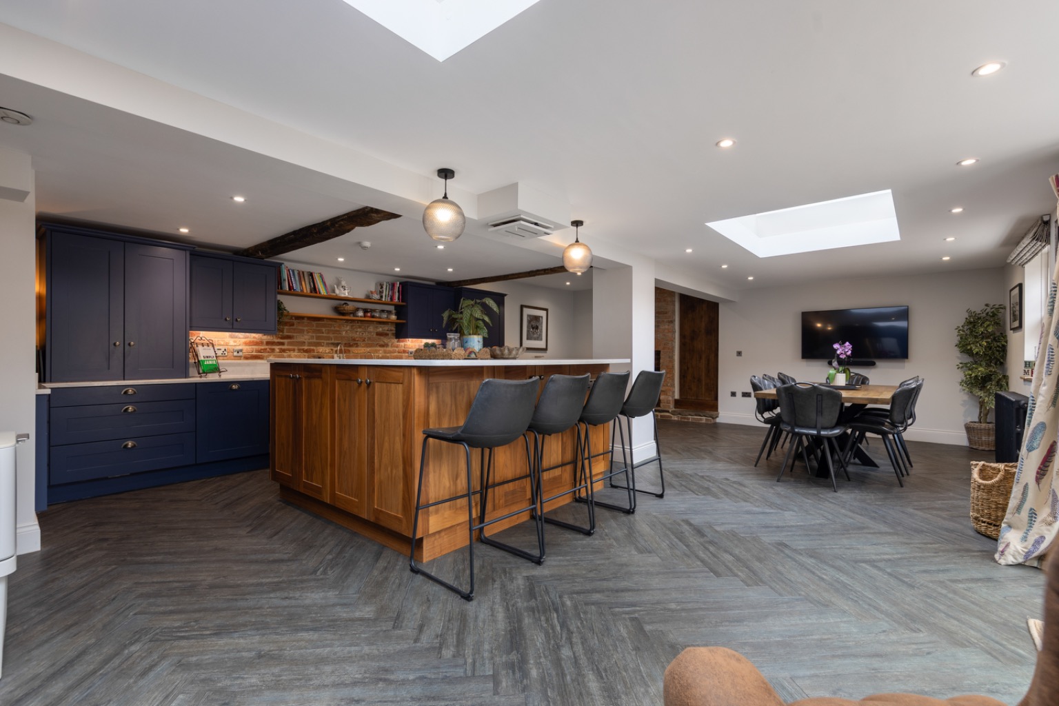 Stunning open-plan kitchen/dining/living space with large central island - perfect for modern family living and entertaining.