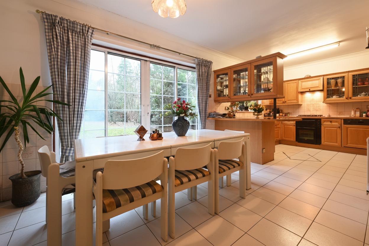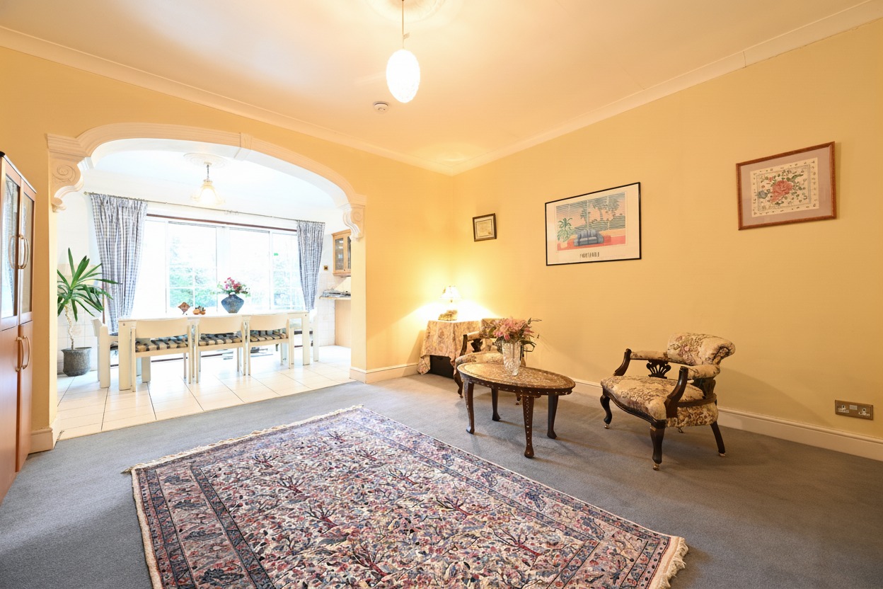 This impressive six-bedroom detached house offers a wealth of space and classic charm, perfectly suited to modern family living. The property welcomes you with a beautifully maintained front garden, mature trees, and a traditional brick facade, complemented by attractive bay windows and a paved pathway leading to the main entrance. Inside, the home features three generous reception rooms and an open plan dining area connected by a decorative archway. Large windows throughout ensure abundant natural light, creating a bright and inviting atmosphere in every room. The kitchen is both functional and stylish, boasting classic wooden cabinetry, integrated appliances, ample counter space, and a seamless open plan layout with the dining area.