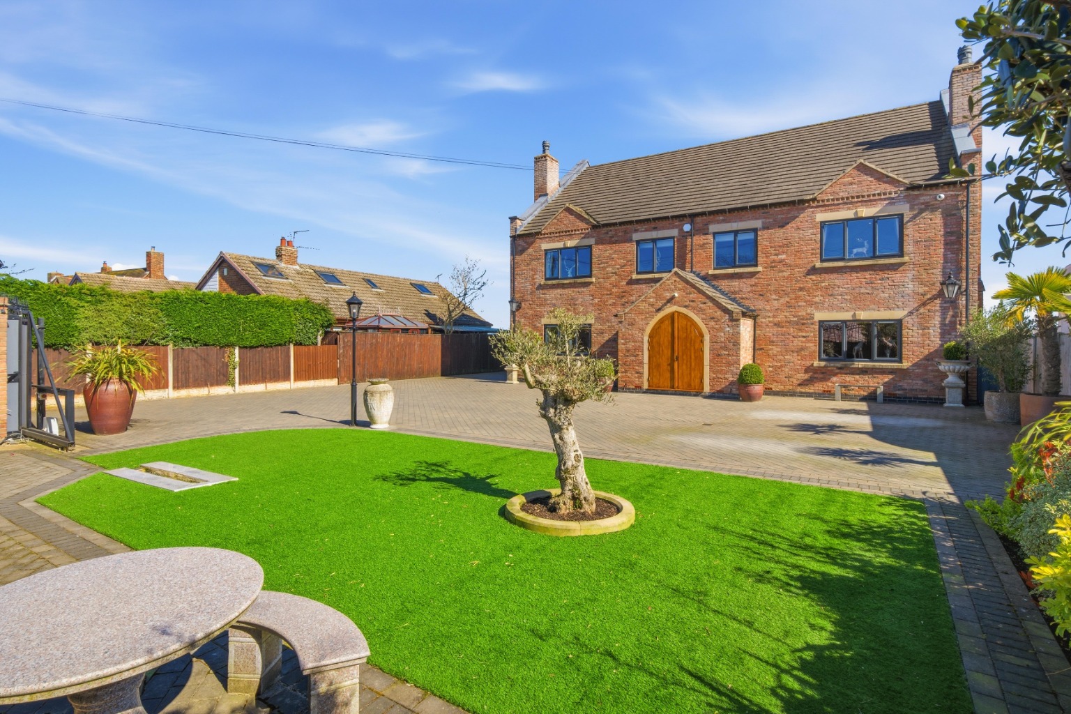 Structured borders and established planting frame the property beautifully, while block paved areas create flow and definition. Multiple seating areas allow the garden to be enjoyed throughout the year.