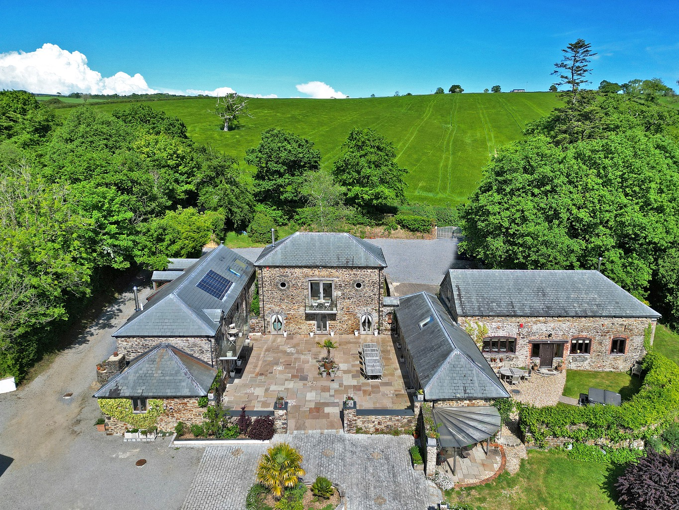 Set in the unspoilt countryside on the edge of Dartmoor National Park, The Manor is an exceptional private estate offering approximately 28 acres of gardens, meadows, and woodland. At its heart stands a distinguished Georgian residence dating from 1800, accompanied by four self-contained cottages, a suite of outbuildings, extensive leisure facilities including a pool, relaxation room and tennis court, and a historic walled garden with outstanding potential.
