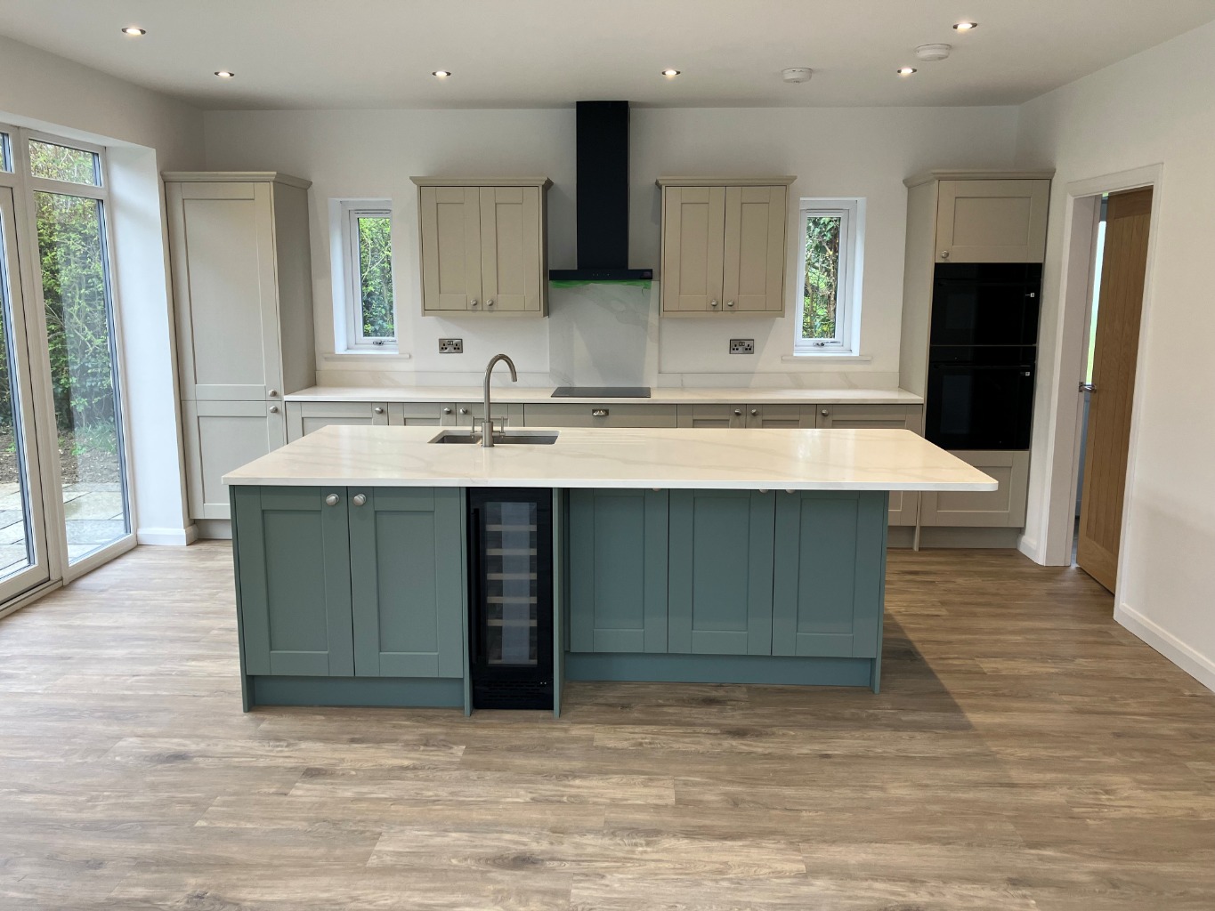 High-spec kitchen with central island and views of private gardens