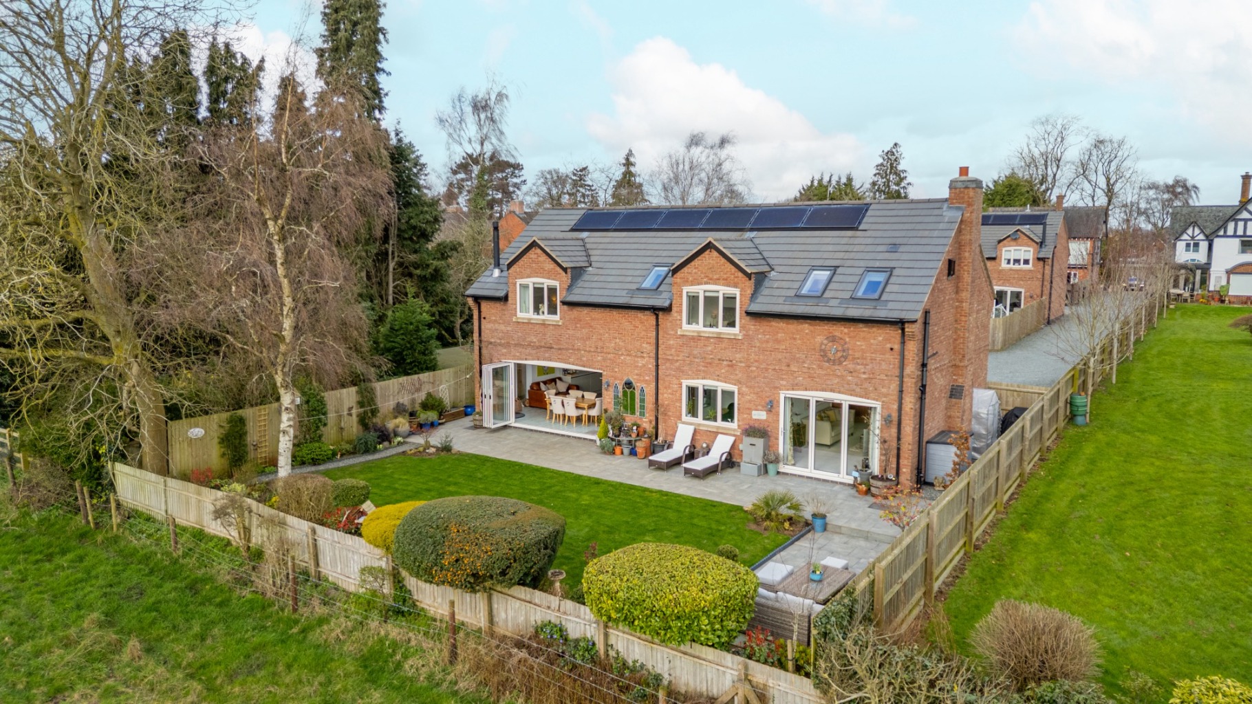 Achieving an impressive EPC Rating A, supported by an air source heat pump, solar panels and triple glazing.